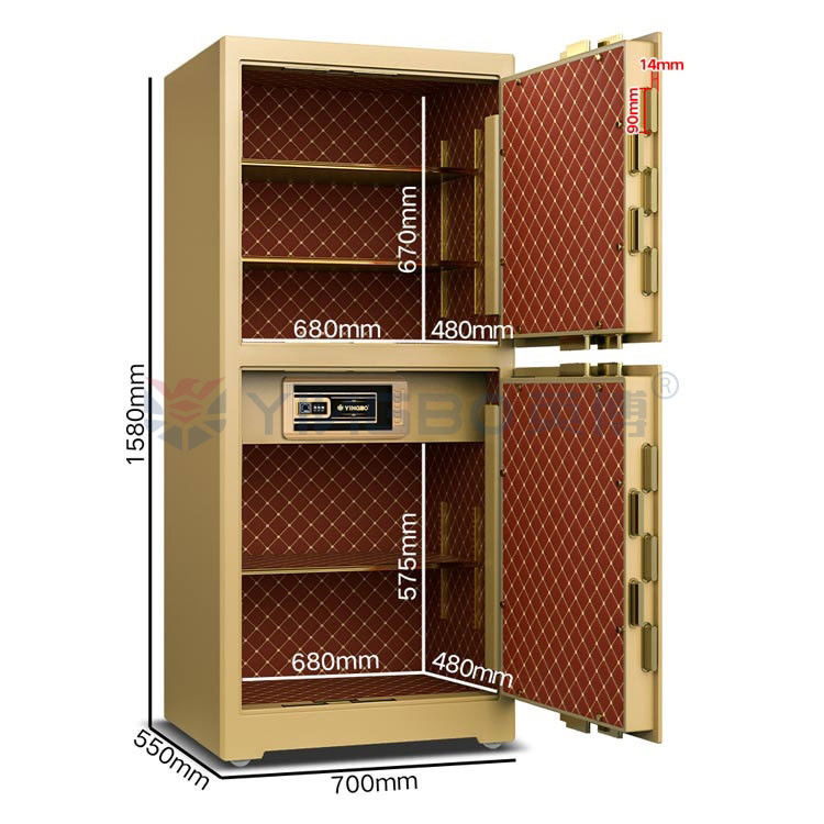 ফ্ল্যাট ডোর অ্যান্টি-প্রাইংঃ লেজার ইন্টিগ্রেটেড কাটিং বক্সের দেহ, মাইক্রো-স্লিট অ্যান্টি-ড্রিলিং, অ্যান্টি-প্রাইং কর্মক্ষমতা ব্যাপকভাবে উন্নত হয়। অভ্যন্তরীণ ক্যাবিনেটের পার্টিশনটি অপসারণযোগ্য,যা ডিজিটাল ক্যামেরা সংরক্ষণের জন্য ব্যবহার করা যেতে পারে, গুরুত্বপূর্ণ নথিপত্র, শংসাপত্র, পাসপোর্ট, গয়না, টাকা ইত্যাদি।
